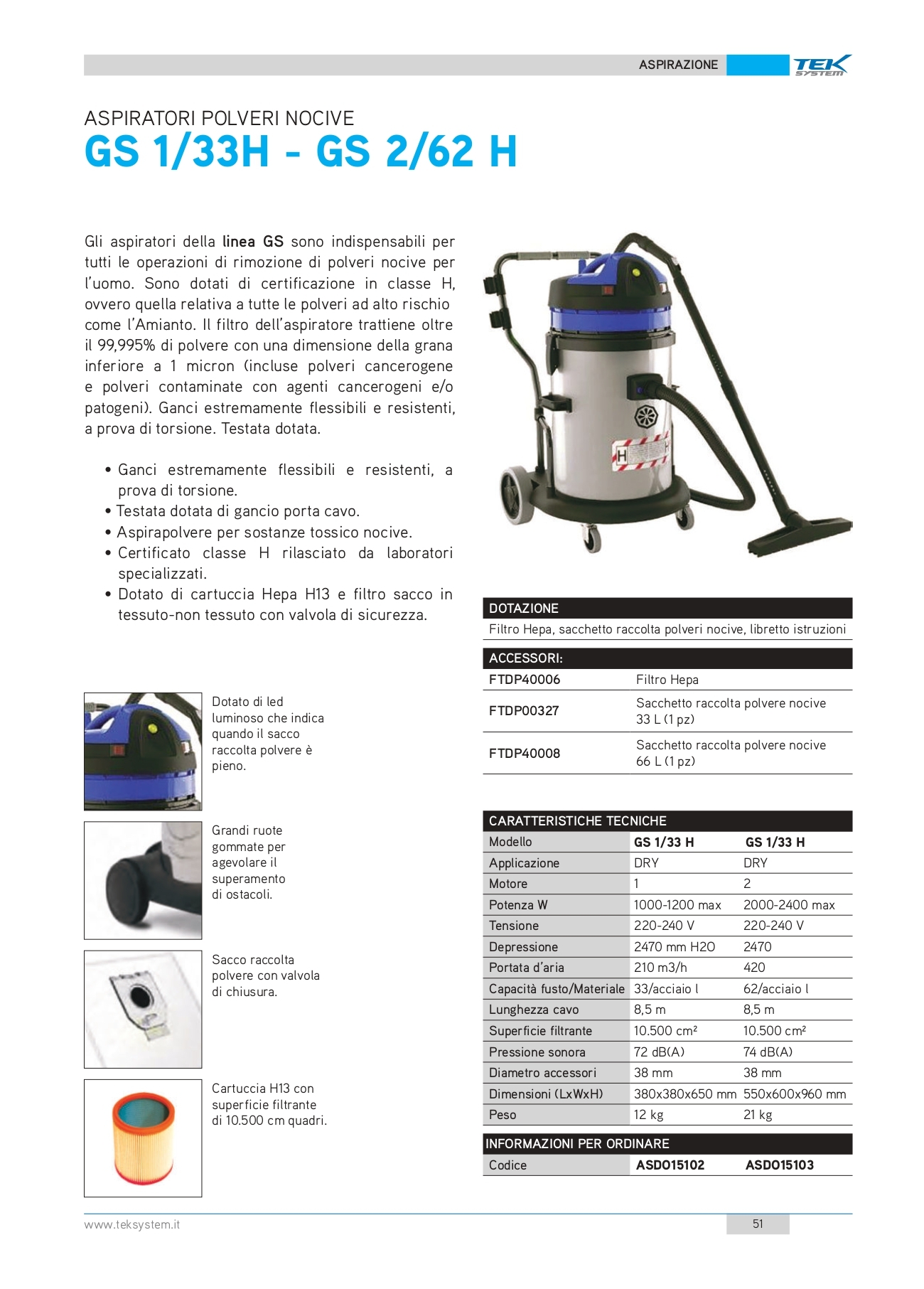 ASPIRATORE POLVERI NOCIVE GS1-33H-GS2-62H